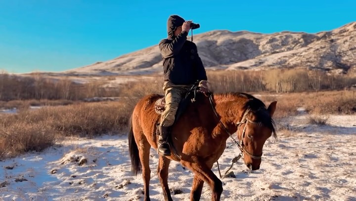 ❄️🐎 Қысқы далада атпен бақылау Қарлы жоталарды атпен аралаған мемлекеттік…