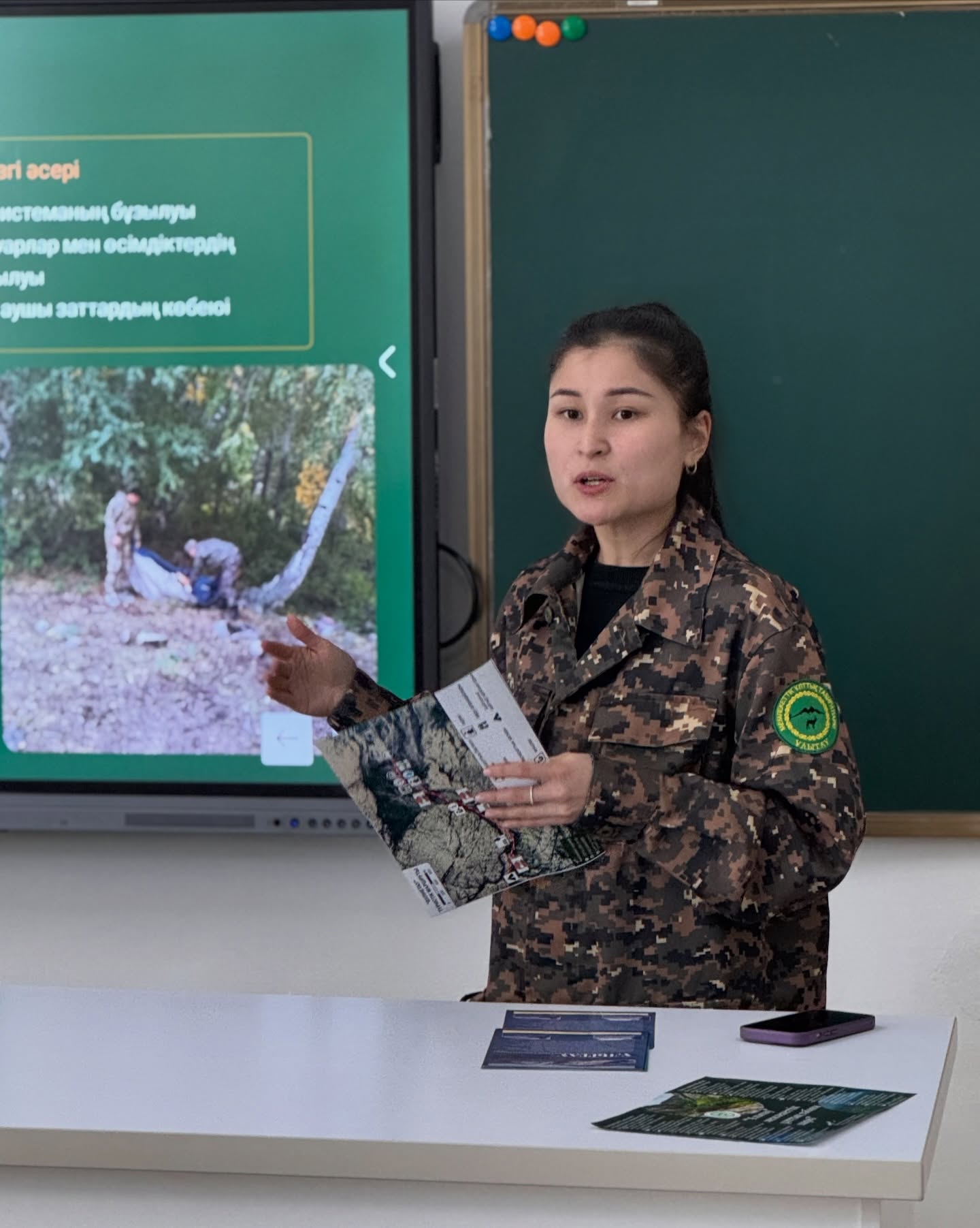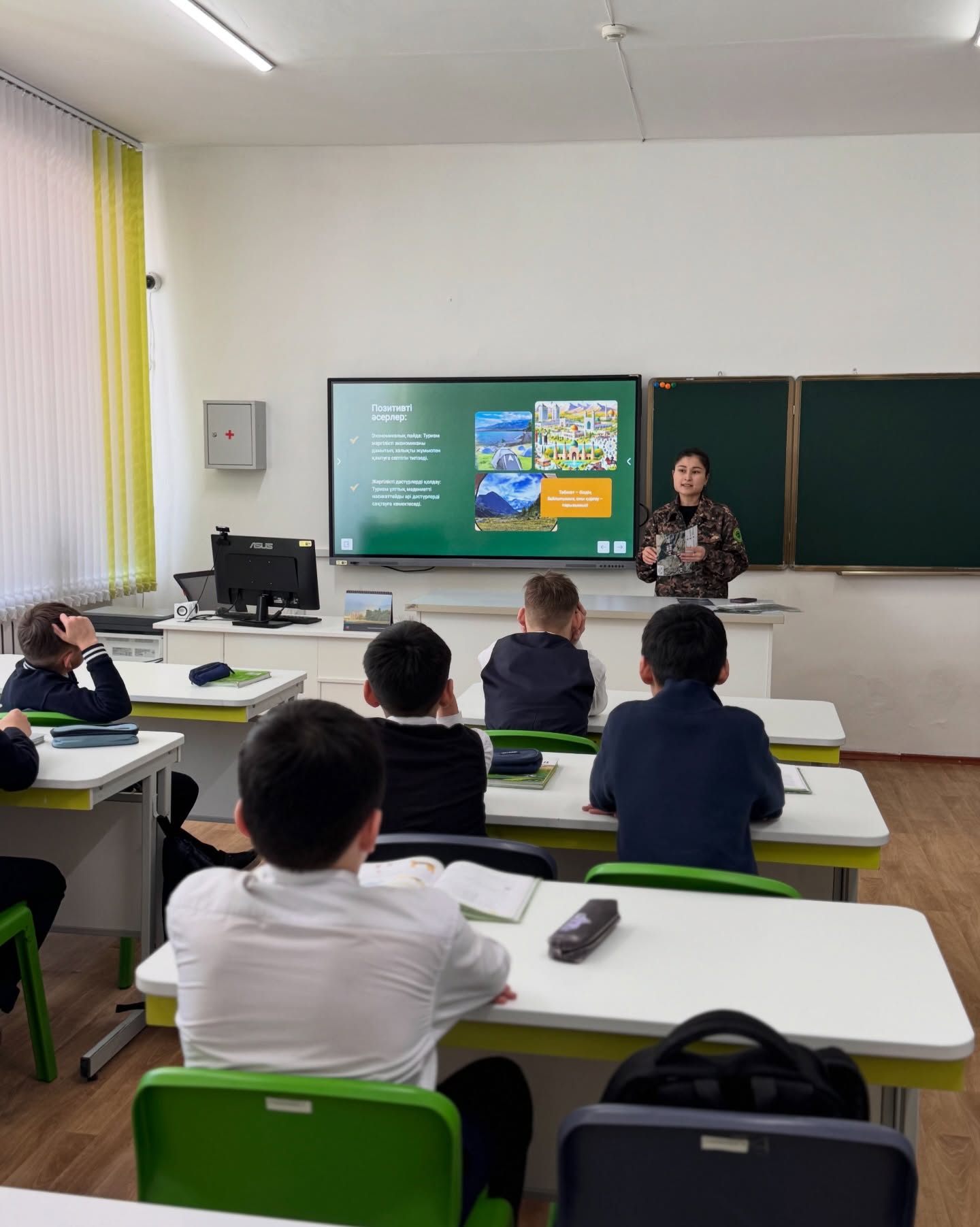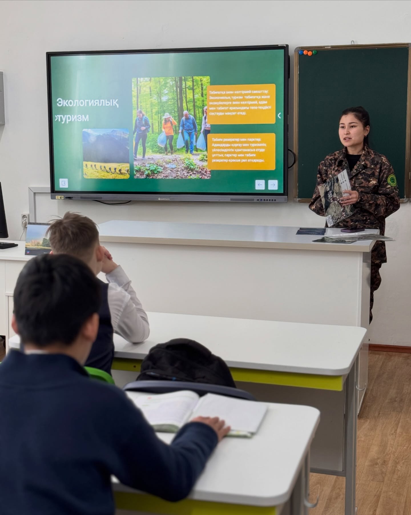 Дәріс барысында өсімдіктер мен жануарлар дүниесінің маңызы, сирек кездесетін түрлерді қорғау және табиғи тепе-теңдікті сақтау туралы кеңінен түсіндірілді 🌎
